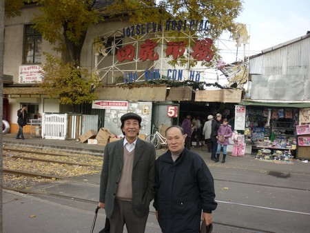 Đạo diễn Nguyễn Hữu Phần và TS. Nguyễn Mạnh Tùng trước Chợ Tứ Hổ (Budapest)