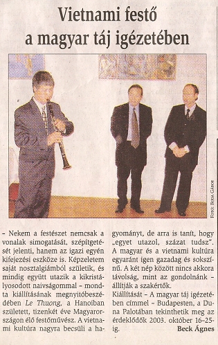 Cuộc triển lãm mang tên "Xúc cảm trước phong cảnh Hung" của họa sĩ Lê Thương được tổ chức tại Duna Palota (Budapest) từ ngày 16-10 đến 25-10-2003.
