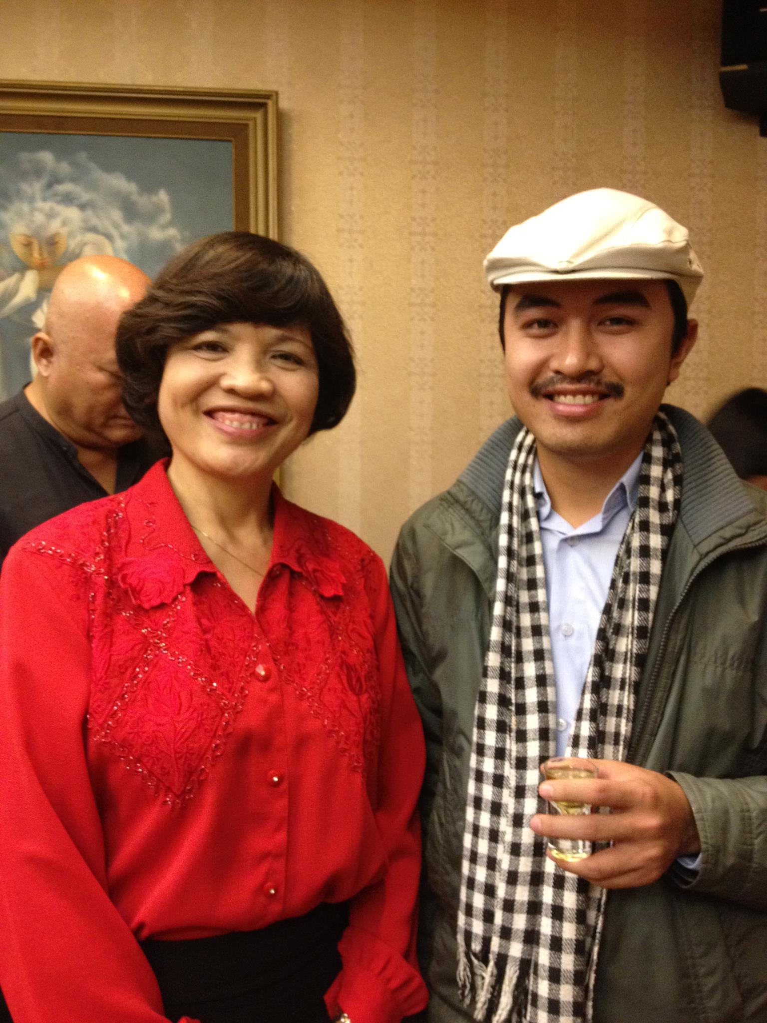 Với nhà báo trẻ Trịnh Hữu Long trong buổi gặp mặt và liên hoan kỷ niệm NCTG vào tuổi 12 ở Hà Nội (ngày 12-12-2012)