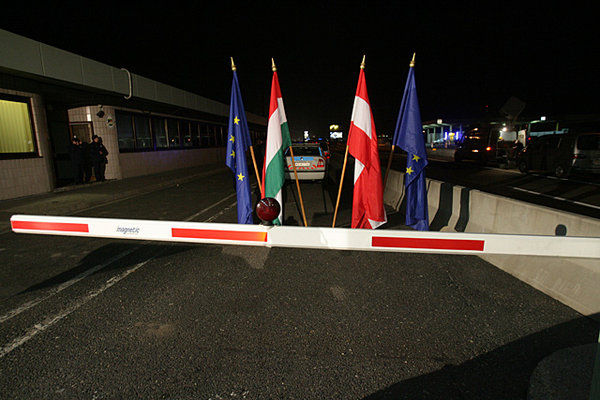 Hàng rào tại biên giới Hungary - Áo, đã được dỡ đêm 20-12-2007 khi Hungary gia nhập Khối phi thị thực Schengen
