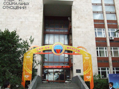Học viện Lao động và Quan hệ Xã hội Moscow đón chào các đại biểu TN, SV - Ảnh: "Quê Hương"