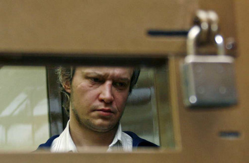 Nga: Sát thủ Aleksandr Picuskin, kẻ bị buộc tội giết hại 49 người, trong phiên sơ thẩm tại Tòa án Thành phố Moscow - Ảnh: MTI/AP