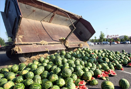 200 TẠ DƯA ĐƯỢC RẢI TRƯỚC SIÊU THỊ AUCHAN