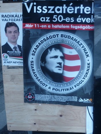 Poster đòi thả tự do cho “người tù chính trị” Budaházy György - Ảnh: Trần Lê