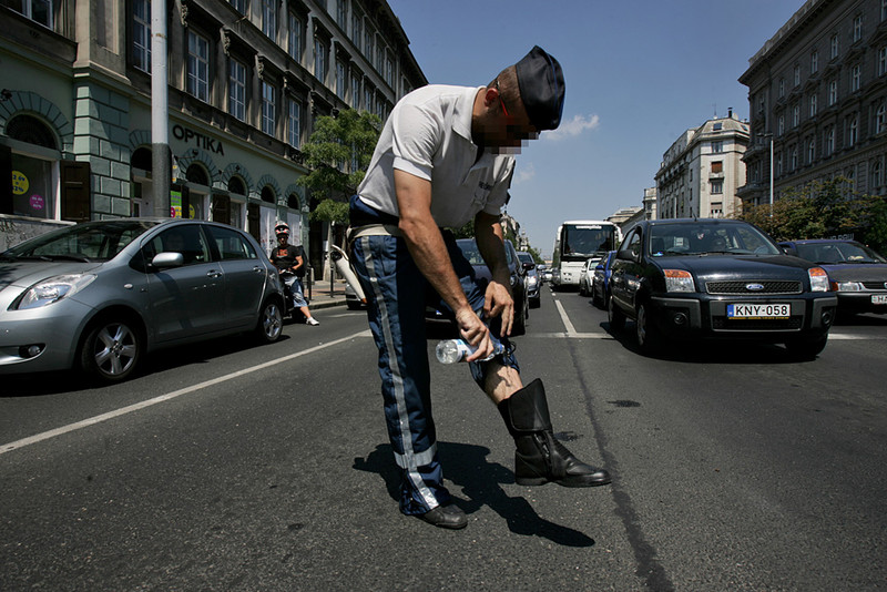 Tại giao lộ giữa đại lộ trung tâm Andrássy và đường Bajcsy-Zsilinszky, nước được phát trước một tòa nhà văn phòng. Ở đây lưu lượng người qua lại nhận nước rất đông đúc vì ngoài khách bộ hành, còn có người đi xe đạp và xe hơi. Bálint, một nhân viên phát nước cho hay, họ sẽ ở đây suốt 1 tuần.