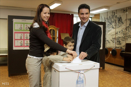 Vona Gábor, ứng viên thủ tướng của đảng cực hữu JOBBIK bỏ phiếu tại Quận III (Budapest)