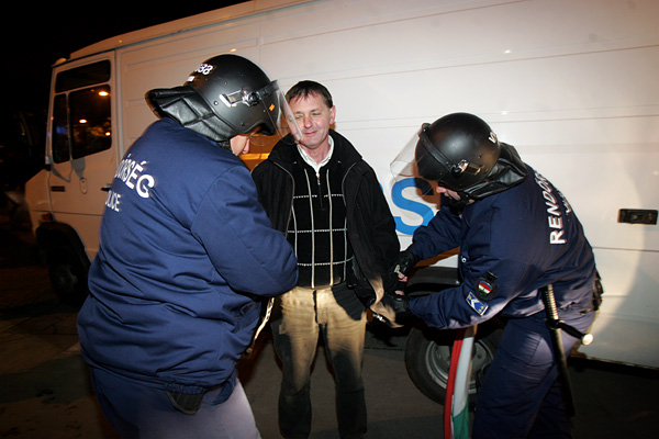 Cảnh sát Hungary giải về đồn những ai không chịu rời hiện trường khi cơ quan công an giải tán một cuộc biểu tình không thông báo trước (mùa Thu 2007) -Ảnh: [index]