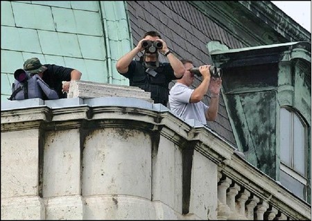 Cộng hòa Hungary đã long trọng đón tiếp tổng thống Mỹ trong bầu không khí... vô cùng nóng nực của một mùa hạ được coi là có thời tiết thất thường ít thấy, khi nhiệt độ ngoài trời lên tới mức 39-40 độ C, khiến nước này phải có lệnh báo động cấp hai vì nóng. Đây là lần thứ hai có một tổng thống Mỹ chính thức thăm Hung: lần trước, chính Bush cha đã có dịp chứng kiến bầu không khí dân chủ của Hung vào năm 1989. (Còn nguyên tổng thống Bill Clinton từng sang Hung hai lần, trong vòng vài giờ, vào các năm 1994 và 1996, nhưng hai dịp đó không được tính là viếng thăm chính thức).