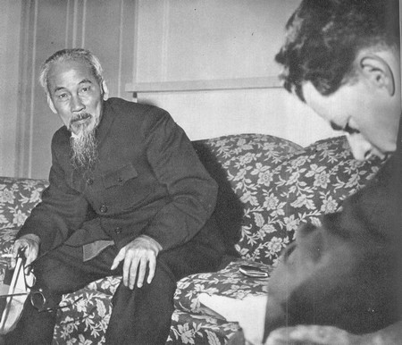 “Chúng tôi bước vào phòng khách quét vôi vàng, được bày biện đơn sơ của Phủ Chủ tịch vào hồi bảy giờ sáng. Hồ Chí Minh bắt tay từng người, ông mời chúng tôi ngồi và đích thân đãi chúng tôi chuối, táo và bánh ngọt. Ông hỏi bằng tiếng Nga: chúng tôi muốn trò chuyện bằng tiếng gì? Thoạt tiên, chúng tôi thỏa thuận với Vụ Báo chí Bộ Ngoại giao Việt Nam rằng cuộc trò chuyện sẽ diễn ra bằng tiếng Anh, nhưng vì có mặt Kovács József nên chúng tôi đề xuất tiếng Pháp. Bác Hồ nói thạo cả ba thứ tiếng và ông cũng rất rành tiếng Trung.