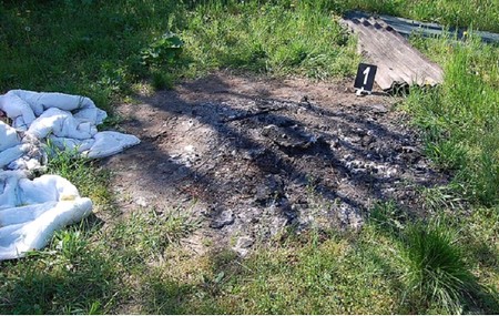 A. Csaba còn để lửa cháy trong nhiều giờ và ngọn lửa chỉ tắt vì một cơn mưa rào sau đó. Thi thể bà Rhodes chỉ còn lại 5 mẩu xương - trong đó có xương hộp sọ -, bị cáo đặt lên một chiếc xe cút kít, đưa sang khu trại đối diện và đào hố chôn tại đó.