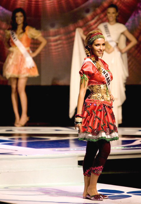 Dammak Jázmin, Miss Universe Hungary, cao 170 cm, nặng 48 kg, đại diện cho Cộng hòa Hungary trong bộ trang phục dân tộc này. “Tôi nghĩ rằng chiến thắng cũng phụ thuộc vào việc mỗi người quyết tâm đến mức nào trong tâm trí của mình, cũng như, đã chuẩn bị như thế nào cho cuộc thi” – Jázmin tiết lộ “bí quyết” của cô như thế.