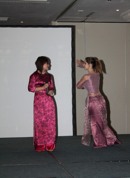 Cử tọa cũng rất chú ý và ấn tượng trước một số tiết mục mang đậm màu sắc dân tộc Việt Nam như dân ca quan họ Bắc Ninh với áo tứ thân, khăn xếp; làn điệu Huế với dáng áo dài duyên dáng; điệu múa “Trống cơm” rộn ràng, hoặc màn trình diễn trang phục ba miền (áo tứ thân, áo dài, áo bà ba). Đặc biệt, có tiết mục “Múa nón” với phần trình diễn của một cặp múa đôi người Hungary.