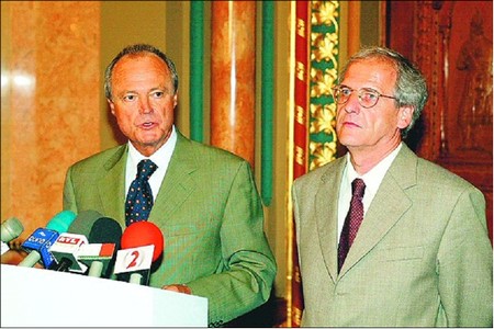 Sólyom László và Medgyessy Péter năm 2002-ben: thủ tướng Hung mời nhà luật học giữ chức chủ tịch một ủy ban - Ảnh: Szabó Barnabás ("Tự do Nhân dân")