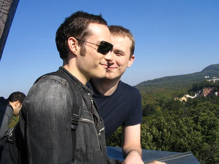 Sebián-Petrovszki László (phải) và người tình đồng tính, ca sĩ Sugár Berry