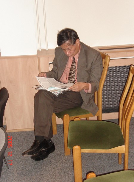 Đọc NCTG trong chuyến công tác Hungary trung tuần tháng 12-2005 - Ảnh: Trần Lê
