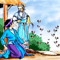 Bụt len lén đến gần, bảo, anh đang câu trộm ở đây mà thấy em khóc, anh ra hỏi xem anh có giúp gì được không.