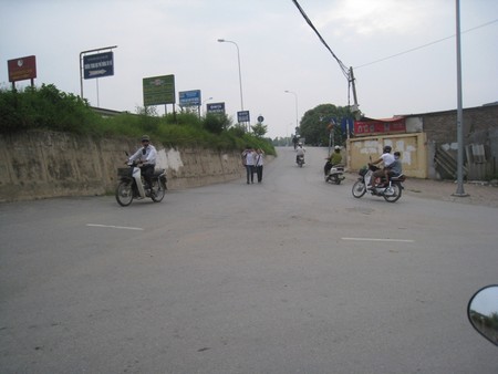 Và kìa, phía trước cũng có dân phòng và ôtô phường đứng. Đang nghĩ đứng ở đây thì bắt lỗi gì nhỉ thì thấy ba bác dân phòng tay cầm dùi cui nhảy ra giữa đường, chỉ thẳng mình bắt dừng lại. Các bố mẹ khác ào ào đi qua và ngoái lại nhìn vì chắc họ không hiểu sao mình bị dừng lại.