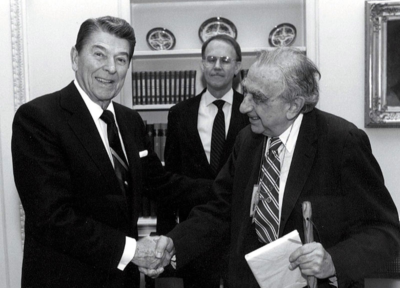Teller Ede (Edward Teller, 1908-2003), cha đẻ của bom H, với tổng thống Mỹ Ronald Reagan (ảnh chụp thập niên 80 thế kỷ trước)