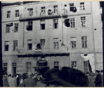 „ Ngay từ những phút đầu tiên các cửa sổ đã vỡ loảng xoảng - Hollósi Ervin khi đó có mặt trong tòa nhà, viết. - Lúc đầu đạn bắn vào các phòng găm lên trần, dấu hiệu cho thấy những người nổ súng bắn lên từ quảng trường, từ sau các gốc cây và ụ súng mới đắp. Nhưng chưa đầy nửa tiếng sau đạn bắt đầu găm vào những bức tường đối diện cửa sổ, thậm chí thấp hơn tầm cửa sổ...”