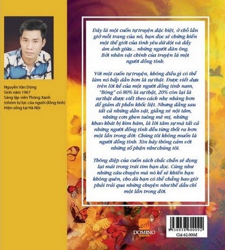 "Bóng - tự truyện của một người đồng tính" do hai nhà báo Hoàng Nguyên và Đoan Trang chấp bút, theo lời kể của anh Nguyễn Văn Dũng, sáng lập viên nhóm Thông Xanh (nhóm tự lực của người đồng tính) tại Hà Nội, "là một cuốn tự truyện đặc biệt, ở chỗ lần giở mỗi trang của nó, bạn đọc sẽ chứng kiến một thế giới của tình yêu dữ dội và đầy ám ảnh giữa… những người đàn ông. Bởi nhân vật chính của truyện là một người đồng tính". Như lời của các tác giả, "được viết dựa trên lời kể của một người đồng tính nam, “Bóng” có 80% là sự thật, 20% còn lại là sự thật được viết theo cách nhẹ nhàng hơn để giảm đi phần khốc liệt. Nhưng đằng sau tất cả những dằn vặt, giằng xé nội tâm, những cơn ghen tuông mê mị, những khao khát bị kìm hãm, là lời tâm sự mà tất cả những người đồng tính đều từng thốt ra hơn một lần trong đời: "Chúng tôi không muốn là người đồng tính. Xin hãy thông cảm với những số phận như chúng tôi".