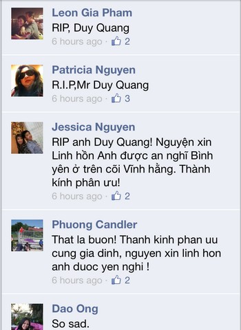 Những lời chia buồn trên mạng xã hội Facebook