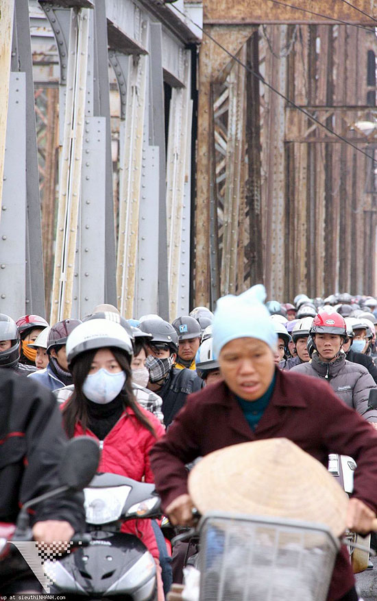 Vài tia nắng sớm ấm áp rọi xuống dòng người đang hối hả, tấp nập, chen chúc để vào cầu Long Biên. Những tiếng í ới gọi nhau, những lời xin lỗi vội vàng khi chẳng may bánh trước xe mình chạm vào quần người đi trước. Người sang có, kẻ hèn có, người già có, học sinh có,... tất cả, ai cũng vội vội vàng vàng cố gắng len lỏi để vào cầu trước.