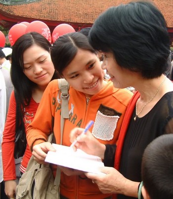 Trần Thị Thanh Thúy (giữa) cùng nhà thơ Nguyễn Thị Hồng Ngát tại Ngày thơ Việt Nam lần thứ 5 (năm 2007) - Ảnh: Nguyên Minh