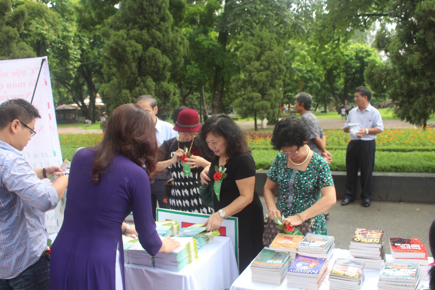 “Sách anh Việt đâu rồi?”, những câu hỏi được đặt liên tục không ngớt, nhưng khi mình dợm bước chân ra định giới thiệu thì các anh chị đã bảo: “Khỏi, chị đọc hết trên phây-búc rồi”. Và thế là anh chị nào cũng chọn cho mình một quyển sách. Có lúc đông quá, hai người bán tíu tít không ngừng tay, mình phải gọi thêm hai người ở nhà ra tiếp sức mới phục vụ được.