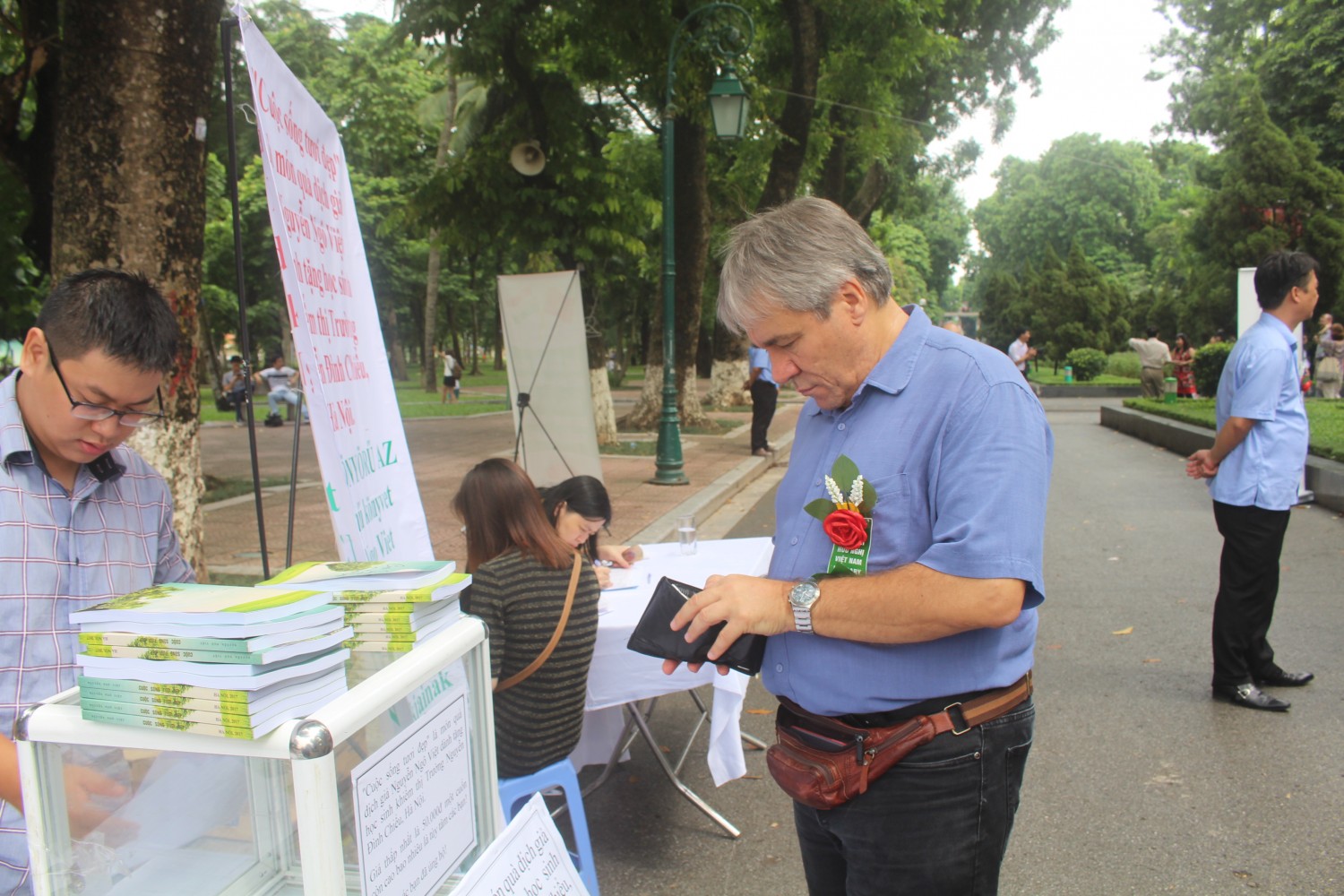 Ông Balázs Áron Bí thư thứ nhất phụ trách Văn hoá Giáo dục và Báo chí Đại sứ quán Hungary tại Hà Nội cũng dừng chân bên quầy sách mua một cuốn