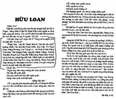 PD: Về MTHS cũng như kỷ niệm giữa tôi và Hữu Loan, tôi đã nhắc đến trong "Hồi ký Thời Kháng chiến" của tôi. Xin gửi lại đoạn đó.