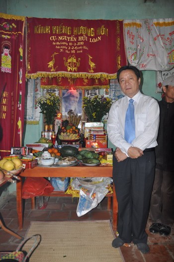 Kỹ sư Lê Văn Chính - Văn Khoa bên bàn thờ Hữu Loan