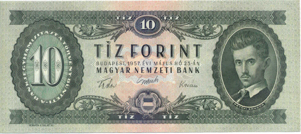 Thi hào Petőfi Sándor trên đồng tiền (cũ) mệnh giá 10 Ft của Hungary
