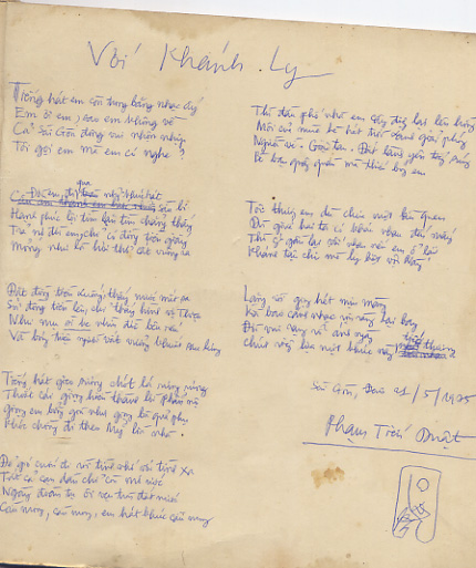Thủ bút của Phạm Tiến Duật ở trang bìa 3 tập nhạc "Tự tình khúc" của nhạc sĩ Trịnh Công Sơn