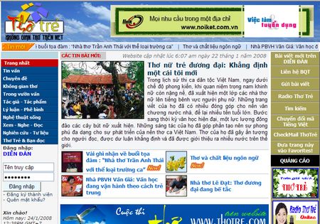 Thơ Trẻ - một diễn đàn văn nghệ của giới trẻ trên mạng Internet (Ảnh chụp màn hình)