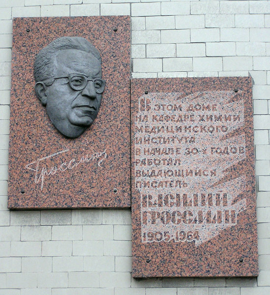 Bảng tưởng niệm Grossman tại Donetsk, nơi nhà văn đã sống và làm việc trong thập niên 30 thế kỷ trước