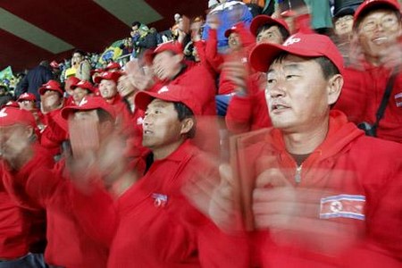 Cũng liên quan tới đội tuyển CHDCND Triều Tiên tại Nam Phi, báo giới để ý đến một nhóm cổ động viên chừng 100 người, cổ động rất nhiệt tình trong trận Bắc Hàn gặp Brazil. Về sau, mới hay rằng tất cả chỉ là một màn kịch, cho dù ăn vận trang phục mang màu cờ của CHDCND Triều Tiên, nhưng tất cả đều là các tình nguyện viên Trung Quốc được thuê và tổ chức cho đi cổ vũ.