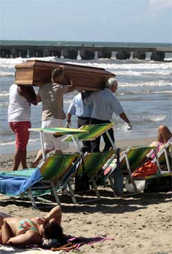 Thứ Hai 20-7, báo chí Ý đã đưa những tấm ảnh khiến thế giới sững sờ: tại bờ biển Torregaveta (Naples), hai thiếu nữ Tzigane 14 và 16 tuổi - có lẽ ra bờ biển để ăn xin và bán đồ mỹ ký - bị sống cuốn trôi và lực lượng cứu hộ trên biển đã không cứu được họ. Khi bị sóng biển đánh dạt vào bờ, hai em được cuốn trong một chiếc khăn tắm, nhưng theo tờ "La Repubblica" (Ý), trước cảnh tượng ấy, "không mấy ai về nhà hoặc thôi tắm nắng, thậm chí còn có những kẻ ăn nhậu vui vẻ cách hai xác chết bất động nằm trên cát có vài mét!"