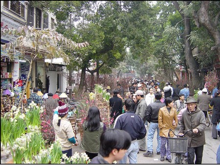 Xuân còn nô nức chen vào phố. Dòng người vốn tấp nập ngày càng tấp nập kia là những ô tô xe máy đầy ắp hàng họ. Đài báo TV đều đưa tin hàng Tết và giá cả hàng hóa, nghe đâu sẽ tăng giá khan hàng, thế mà hàng hoá cứ ăm ắp phố phường. Nếu vào siêu thị, nhất là siêu thị bán buôn hẳn bạn sẽ ngạc nhiên vì rất nhiều khay hàng đột nhiên hết nhẵn. Vào cuối tuần hãy lang thang mấy con phố đi bộ, bạn sẽ thấy Tết thật là Tết. Không chỉ là hàng gia công giày dép quần áo ngập tràn như mọi khi mà hoa lụa, thiệp Tết, tranh Tết cứ gọi là thi nhau khoe sắc.