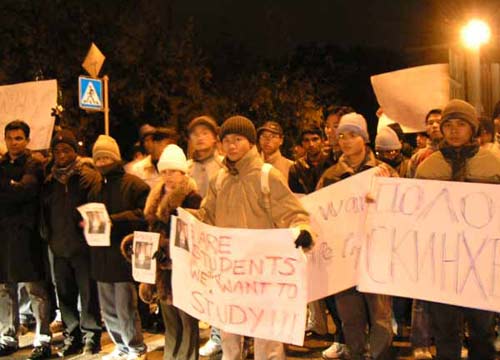 Biểu tình phản đối vụ giết hại sinh viên Vũ Anh Tuấn tại Saint Petersburg. Thủ phạm của vụ án này, được coi là những thanh niên theo xu hướng phân biệt chủng tộc, đến nay vẫn chưa bị trừng trị