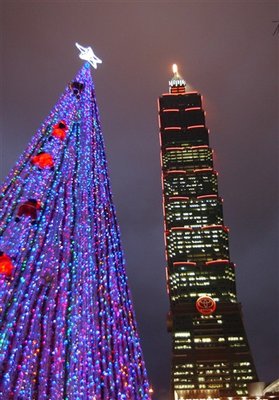 Cây thông Noel cao bằng tòa nhà 5 tầng tại Đài Bắc