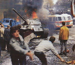 Chiến xa Liên Xô trên đường phố Praha, 1968 - Cư dân thủ đô Tiệp Khắc đã dùng bom xăng để chống cự quân đội các nước Hiệp ước Warszawa