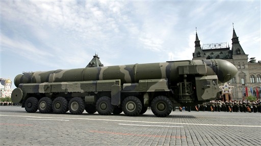 Tên lửa Topol-M tại cuộc đại diễu binh ở Moscow, Ngày Chiến thắng 9-5-2008 - Ảnh: AFP