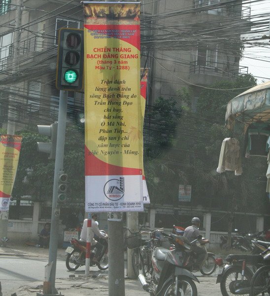 Còn cái vụ treo banner lịch sử trên đường phố để “Dân ta phải biết sử ta - Cho tường gốc tích nước nhà Việt Nam” (Cụ Hồ), ai nghĩ ra thì cũng là hay rồi, nhưng tại sao không làm thành những bức bia đồng, khắc ốp vào tường phố ấy, cho nắng mưa không làm phai mòn, cho không phải lúc nào ai hứng lên cũng gỡ bỏ được. Để bất cứ cá nhân hay đoàn thể nào, và nhất là vì lý do chính trị, người ta chớ có tự tiện tháo dỡ!