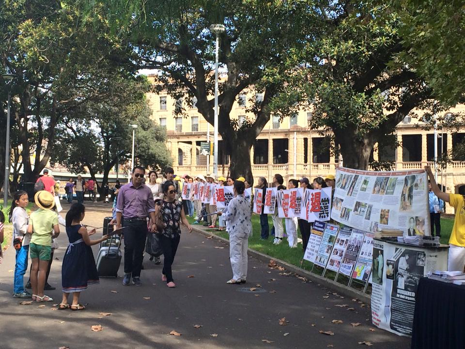 Hôm nay, 18-4-2015, người dân tại trung tâm Sydney đã cùng xuống đường ủng hộ các học viên Pháp Luân Công (Pháp Luân Đại Pháp) lên tiếng phản đối những chính sách dã man của nhà cầm quyền Trung Quốc như giam giữ và giết hại những người theo môn phái này.