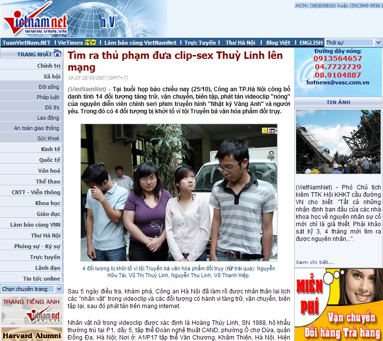 Đồng thời, với nội dung gần như nhau, đại đa số các báo đều đăng ảnh (không che mặt), địa chỉ, nơi học (không hề viết tắt, mà để nguyên xi)... cùng những thông tin nhân thân rất kỹ lưỡng (đến mức có vẻ hơi… bất thường!) của 4 SV (sau đó bị VKS cho phép khởi tố và bắt để tạm giam), cùng những người khác bị coi là có liên quan trong vụ này. Câu chuyện "clip sex đã bị phát tán như thế nào?" cũng được kể lại rất tỉ mỉ, đượm màu "hình sự".