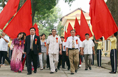Tổng Bí thư Nông Đức Mạnh dự lễ khai giảng Trường THPT Chu Văn An, Hà Nội - Ảnh: Cao Từ (“Dân Trí”)