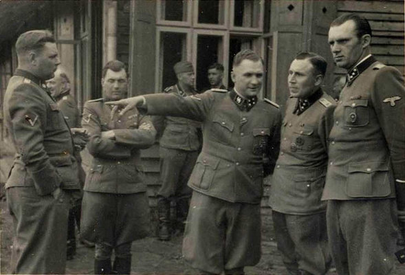 Josef Kramer (trưởng trại Birkenau), “bác sĩ” Josef Mengele, Richard Baer (trưởng trại Auschwitz từ tháng 5-1944), Karl Höcker và một sĩ quan chưa rõ danh tính tại nhà nghỉ