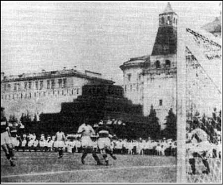 Đội Spartak chơi tại Hồng trường (phía sau là điện Kremlin và lăng Lenin) - Ảnh: từ hồi ký của Nikolai Starostin