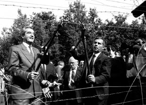 Hai ngoại trưởng Alois Mock (Áo) và Horn Gyula (Hungary) cắt tấm màn sắt chia cắt Đông - Tây (mùa hè năm 1989)