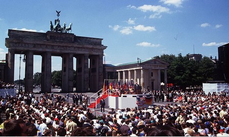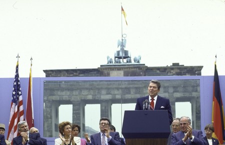 Cũng như trong trường hợp Kennedy, bài phát biểu của Ronald Reagan trước cổng Brandenburg trong những năm tháng cuối của kỷ nguyên xung đột Quốc - Cộng còn đọng lại trong tâm trí rất nhiều người bởi câu nói mang lại tác động lớn: “Ngài Gorbachev, hãy phá đổ bức tường này!”.